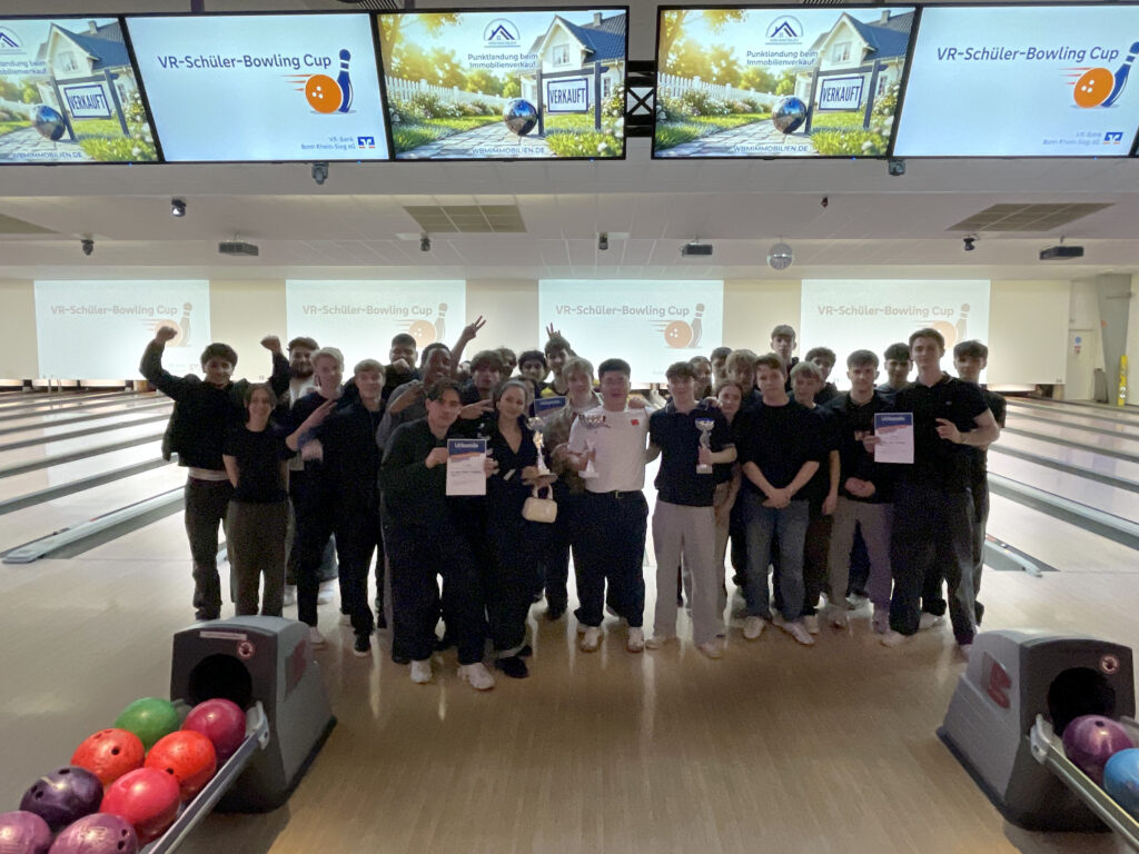 Ausgelassene Stimmung, spannende Spiele und jede Menge Teamgeist: Bereits zum 14. Mal veranstaltete die VR-Bank Bonn Rhein-Sieg eG ihren beliebten Bowling-Cup für Schülerinnen und Schüler der Oberstufen aus der Region. In der Bowling Arena Spich traten Teams aus Gymnasien, Gesamtschulen und