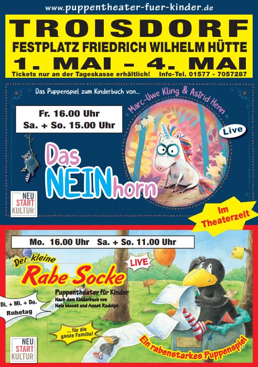 Barber‘s Puppentheater für Kinder gastiert vom 1. – 4.5.2026 in Troisdorf