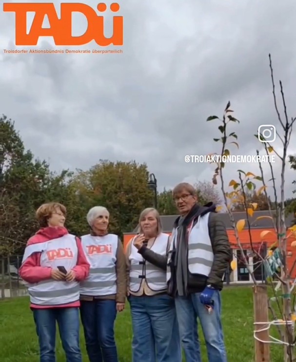 In den sozialen Medien gibt es zurzeit die Baum-Challenge 2025 (#baumchallenge), bei der Organisationen, Vereine oder Unternehmen nominiert werden, innerhalb einer bestimmten Frist einen Baum zu pflanzen. TADü wurde von den Grünen Troisdorf nominiert und hat innerhalb von 72 Stunden in Absprache mit der Stadt am Haus Broich in Spich einen Birnbaum gepflanzt. Es handelt sich um eine alte Sorte, Clapp’s Liebling.