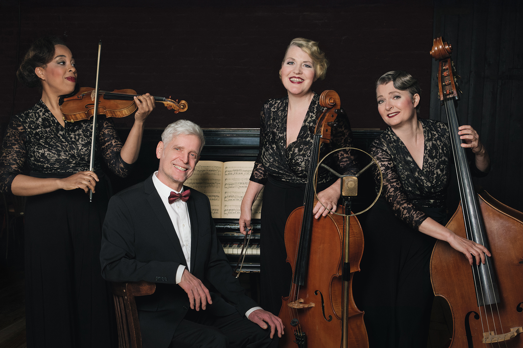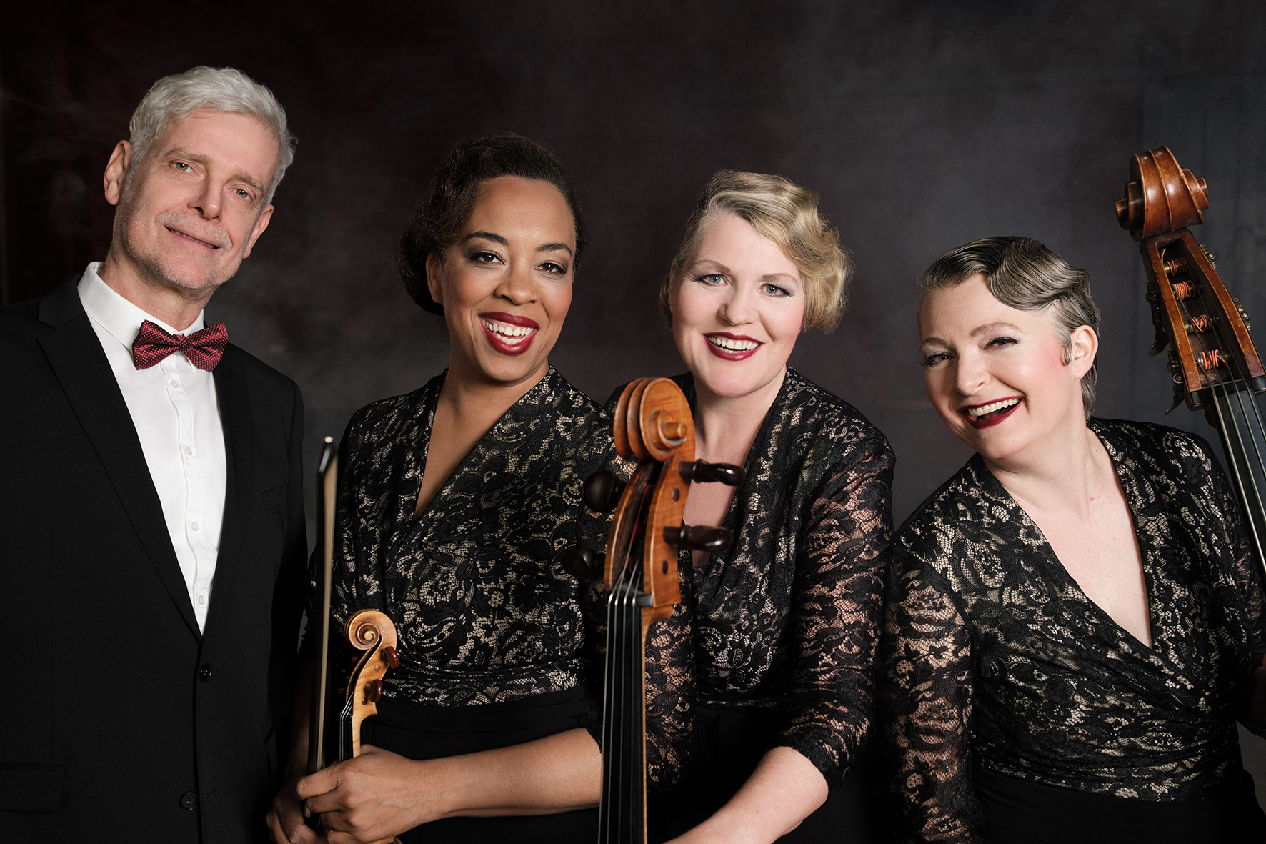 Das Quartett, bestehend aus Aglaja Camphausen (Gesang und Violoncello), Nadine Goussi Aguigah (Violine und Gesang), Edith Langgartner (Kontrabass und Gesang) und Ulrich van der Schoor (Klavier), begeistert mit eigenen, raffinierten Arrangements und virtuoser Instrumentalmusik.