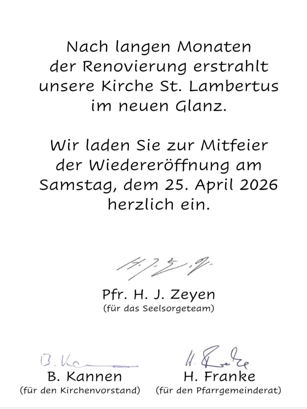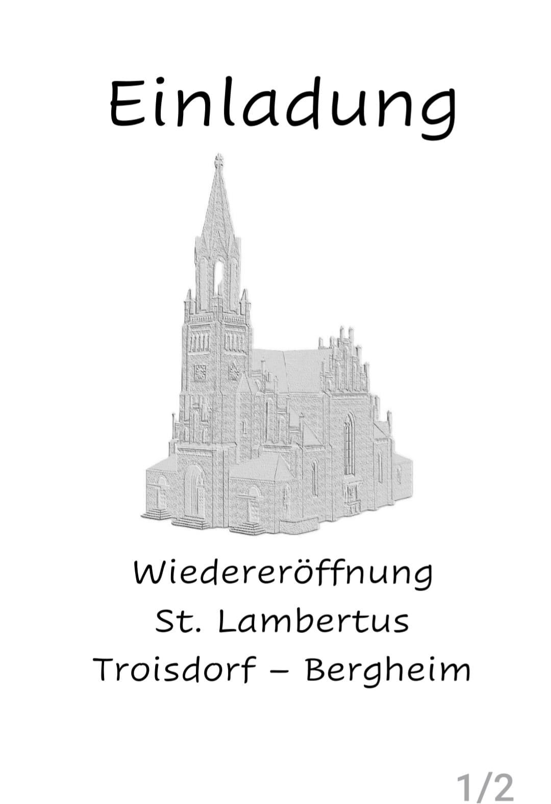 Herzliche Einladung zur Wiedereröffnngsfeier von unserer restaurierten Pfarrkirche St. Lambertus Bergheim