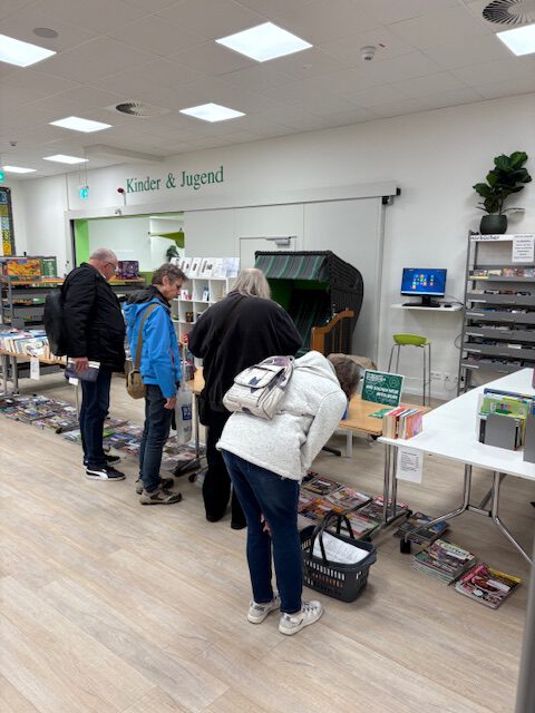 Doch der Flohmarkt läuft weiter: Bis zum 3. Dezember können Bücher, Spiele, CDs, DVDs und andere Medien gespendet werden. Jeden Dienstag kommen neue Angebote auf die Tische und warten auf interessierte Käuferinnen und Käufer. Besonders gefragt sind aktuelle Bücher aus den letzten fünf Jahren, komplette Bücherserien, Spiele, Spielzeug und andere gut erhaltene Medien.