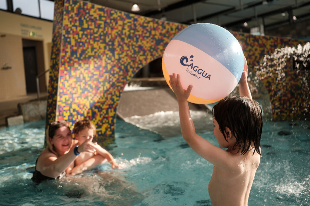 Das Erlebnisbad bietet vielfältige Möglichkeiten – vom sportlichen Schwimmen im 25-Meter-Becken über den Badespaß im Erlebnisbereich mit Strömungskanal, Black-Hole-Rutsche und Kletterdelfin bis hin zur Erholung im Entspannungsbecken. Parallel lädt die premiumzertifizierte AGGUA Sauna & Lounge mit ihren sieben Themenbereichen zu Auszeiten vom Alltag ein.