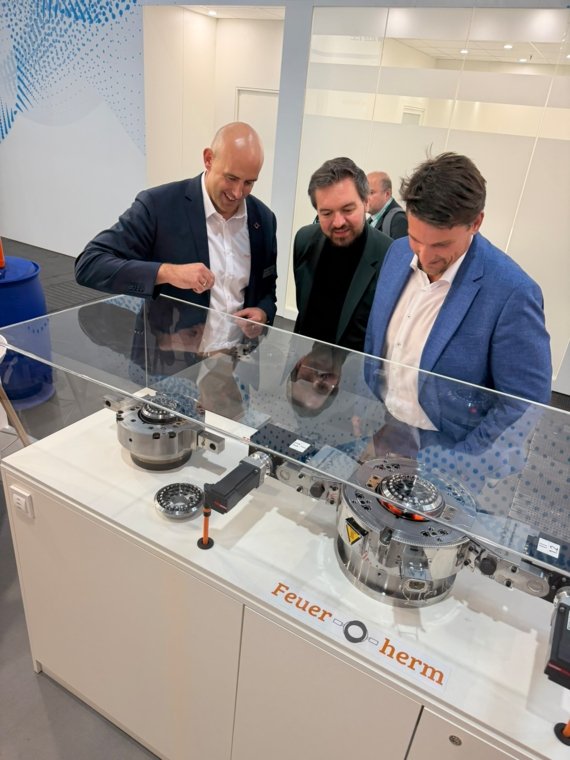 (v.l.n.r.:) Bürgermeister Alexander Biber, Ulrich Reifenhäuser (Geschäftsführender Gesellschafter der Reifenhäuser GmbH) und TROWISTA-Geschäftsführer Alexander Miller.