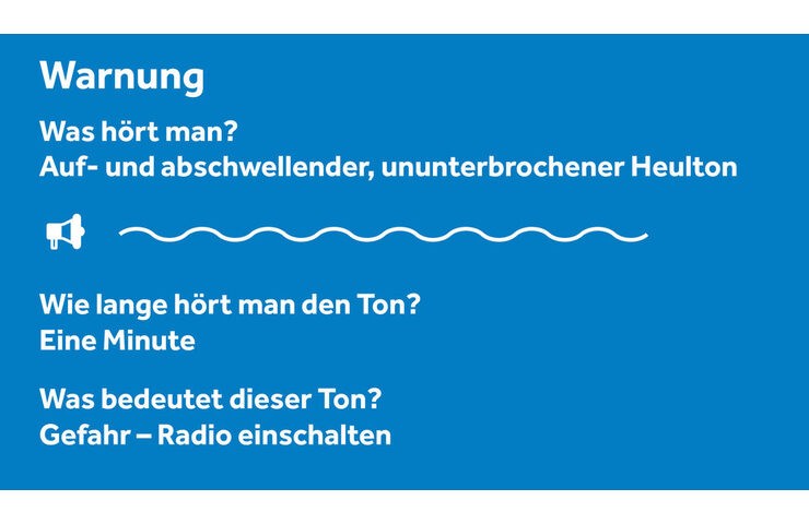 So sollten sich die Bürgerinnen und Bürger beim Sirenensignal „Warnung“ im Ernstfall verhalten: