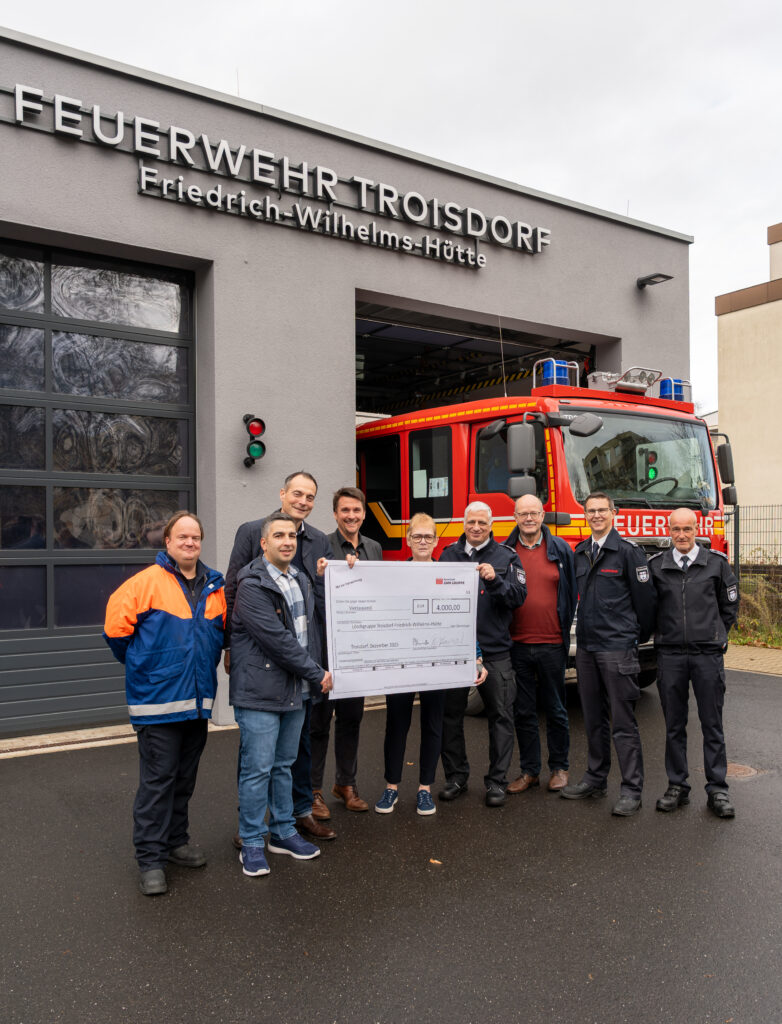 Eine großzügige Spende über 4.000 Euro übergab Geschäftsführer Thomas Lewen von der Mannstaedt GmbH an den Förderverein der Löscheinheit Friedrich-Wilhelms-Hütte. Der Betrag ist zweckgebunden und soll direkt in die Förderung der Jugendfeuerwehr fließen.