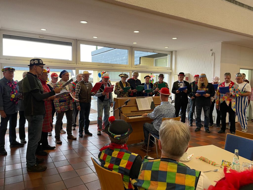 Ein sicheres Händchen bewiesen Bettina Maria Kreuzer und Bernd Dölger als Organisatoren, als sie das Programm für den karnevalistischen Nachmittag beim ÖDC ( Ökumenisches Seniorencefé) zusammenstellten, denn mit dem Männergesangverein 1894 Eschmar und Pfarrer Hermann Josef Zeyen konnte man Garanten für gute Unterhaltung gewinnen. Den Beginn machte der MGV Eschmar, der mit 20 Sängern in der Kreuzkirche Sieglar einen umjubelten Auftritt hatte. Er trug in gekonnter Weise unter dem Dirigat von Ralf Pohle 6 Lieder vor, darunter ein Bläck Föös Potpourri, was so gut ankam, so dass der Chor mit dem “ Stammbaum“ noch eine Zugabe geben musste. Zum Schluss sang er mit den etwa 50 Anwesenden „Kutt jot heim „.