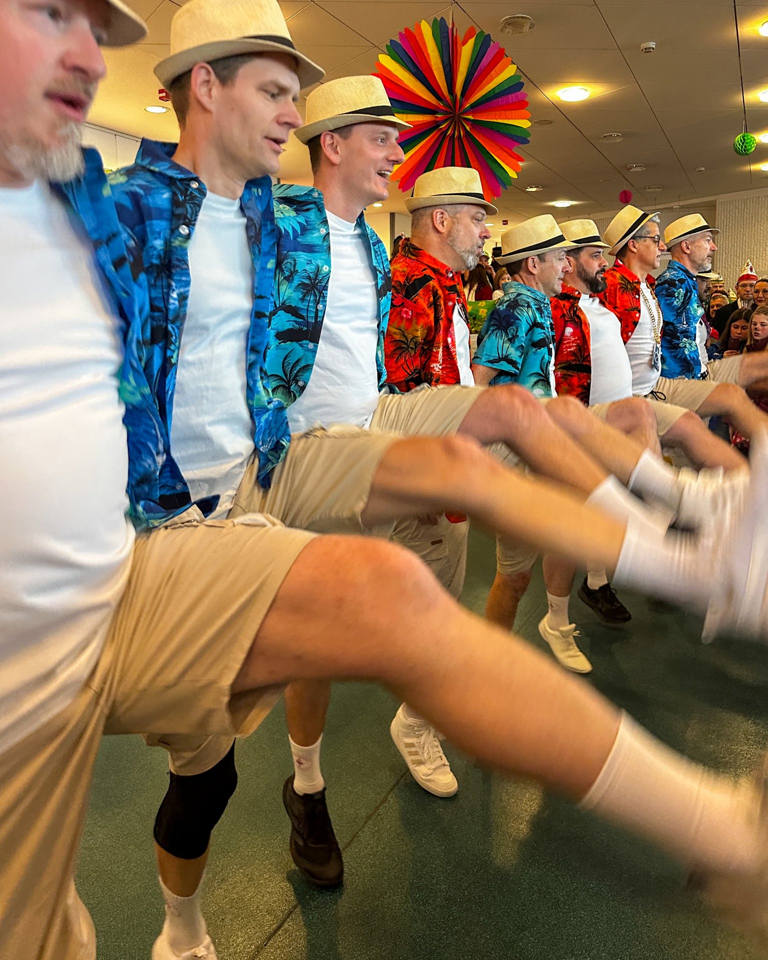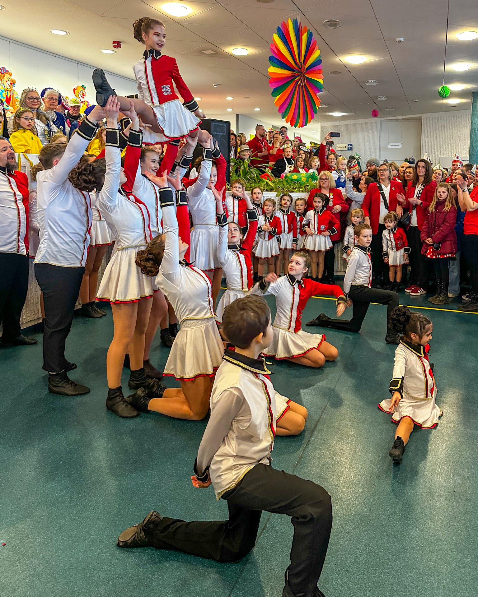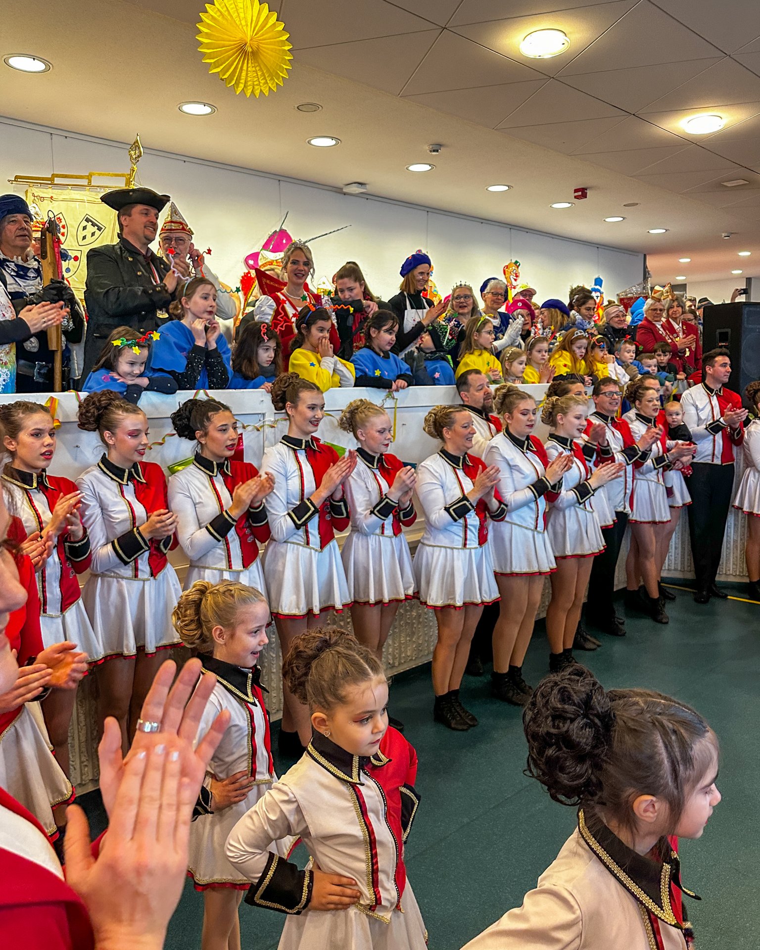 Das karnevalistische Programm begeisterte die Gäste: Die Burggarde Spich, die Spicher Prinzessin, das MDK Blau-Weiß Troisdorf, das Männerballett Kriegsdorf, das Troisdorfer Prinzenpaar, die Fidelen Sandhasen Oberlar, das Eischemer Dreigestirn sowie die Rheinkristalle glänzten mit großartigen Auftritten. Die Siegburger Musikanten unter Leitung von Andreas Bönninghausen sorgten für ausgelassene Stimmung.
