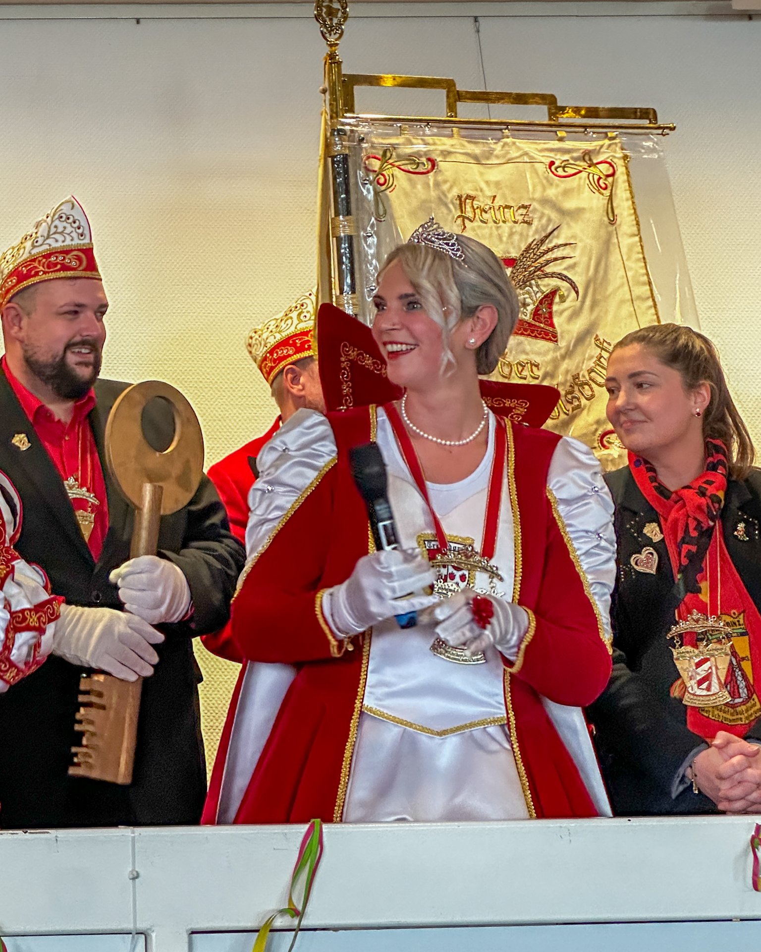 Am Ende zeigte sich der Bürgermeister großzügig: Für ein Prinzessinnen-Bützje öffnete er die Rathaustüren und gab den Schlüssel frei. Die Freude war groß, schnell feierte man ausgelassen und versöhnte sich in Freundschaft. „Ein weiteres Mal ist unser Rathaussturm ein echtes Highlight der Session – mit viel Lachen, Spaß und jeckem Zusammenhalt“, so Biber.