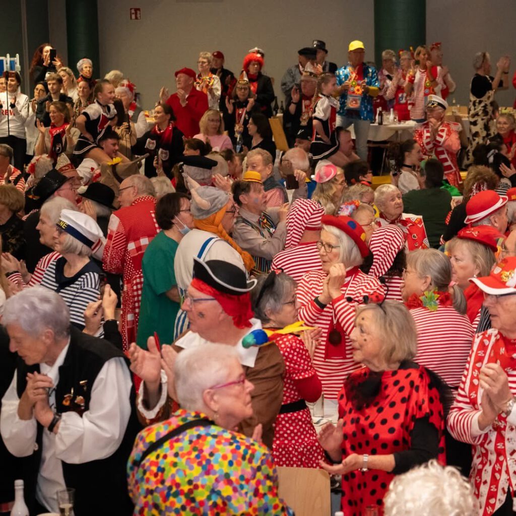 Die Gäste erlebten einen stimmungsvollen Nachmittag mit Redebeiträgen, Musik und Tanz. Zu den Höhepunkten zählten die Auftritte der Junioren und Senioren der Fidelen Sandhasen, der Blauen Funken sowie weiterer Gruppen. Für besondere Begeisterung sorgte zum Abschluss das Troisdorfer Prinzenpaar.