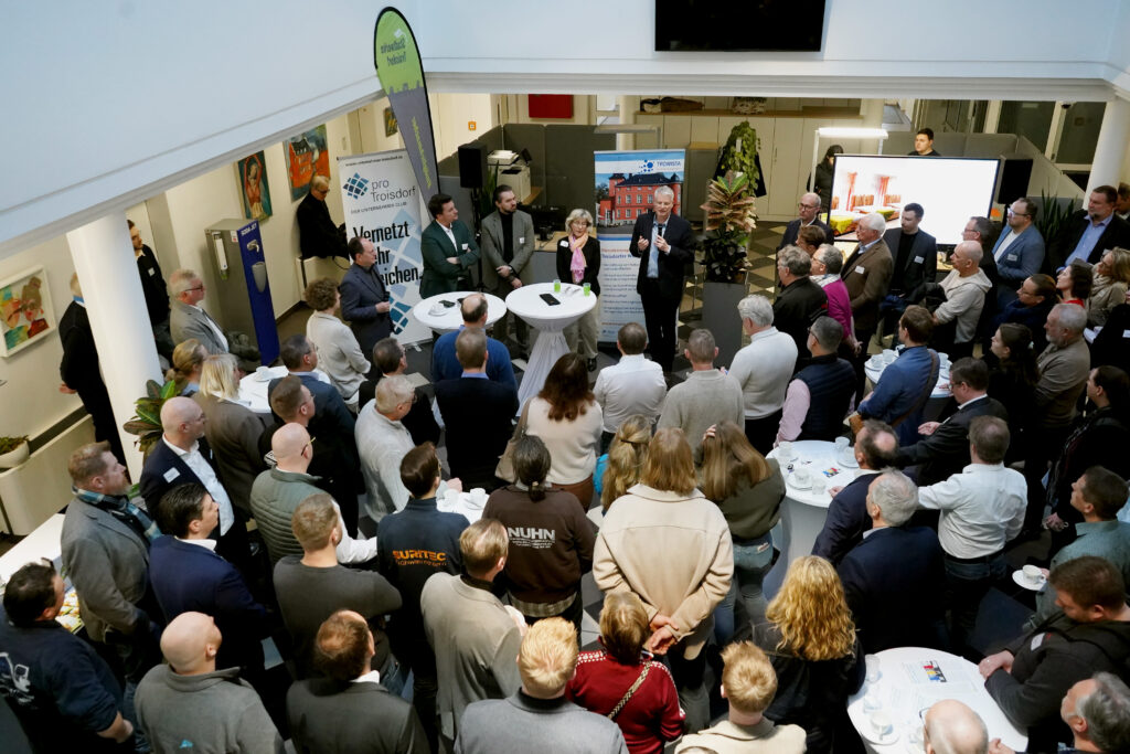 (Troisdorf, 06.02.2026) Netzwerken, Gespräche führen und neue Impulse mitnehmen – genau darum ging es beim ersten Unternehmerfrühstück des Jahres bei den Stadtwerken Troisdorf. Mehr als 100 lokale Unternehmerinnen und Unternehmer waren der Einladung des Unternehmer-Clubs pro Troisdorf und der Wirtschaftsförderung TROWISTA gefolgt und füllten am frühen Morgen das Stadtwerke-Kundenzentrum in der Poststraße mit Leben. Der Lokalversorger trat als Gastgeber gemeinsam mit seinen Schwesterunternehmen AGGUA TROISDORF und TroiLine auf; auch der Abwasserbetrieb Troisdorf, AöR (ABT) war vor Ort präsent. Im direkten Austausch mit den Teilnehmenden begrüßte Troisdorfs Bürgermeister Alexander Biber die Gäste und nutzte den Vormittag für den direkten Austausch mit der lokalen Wirtschaft.