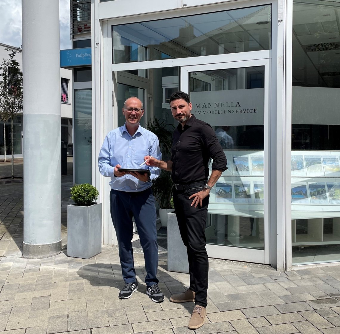 Zentrenmanager Stephan Frings (TROWISTA) und Quartiersarchitekt Veysel Akyol (Akyol Architektur) im Jahr 2024 bei einer Begehung der Troisdorfer Innenstadt.Freitag, 23. Januar 2026