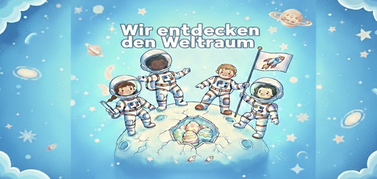 Die Kinder erwarten kreative und spielerische Aktivitäten rund um das Sonnensystem und den Weltraum, eine galaktische Backwerkstatt, einen Ausflug ins Haus der Geschichte nach Bonn und natürlich darf die traditionelle Eiersuche nicht fehlen.